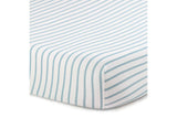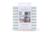 Our 100% cotton cot fitted sheet has all around elastic to ensure a safe, snug fit. The timeless blue and white stripe is printed on soft, durable, and breathable fabric. Seemlessly coordinates with other items in this collection or mix and match with your own pieces for a classic look. Designed to be fade-resistant and machine washable for easy care. Fits most standard size cot mattresses.