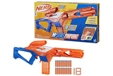 The Nerf N Series Pinpoint dart blaster is built for accuracy with cool styling and features that give you a targeting advantage in Nerf backyard games. The bolt-action blaster has a 10-dart clip and includes 18 Nerf N1 foam darts, giving you enough darts to fully load the clip and additional darts for reloads. To play, load darts into the clip, load the clip into the blaster, move the priming bolt backward and forward, and pull the trigger to fire a dart. Nerf N Series blasters are compatible only with Nerf N1 darts. Eyewear recommended (not included).