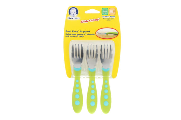 NUK Gerber Kiddy Cutlery Green BPA Free Dishwasher Safe Easy Clean 18+ Months - 3 Toddler Forks
