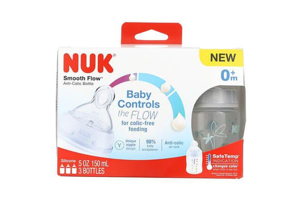 NUK, Smooth Flow, Anti-Colic Bottle, 0+ Months, 3 Bottles, 5 oz (150 ml) Each