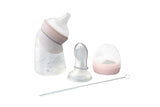 Marcus & Marcus Toddler Children Silicone Angled Feeding Bottle & Spoon Pink 6M+