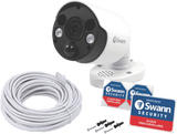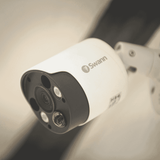 See everything in crystal clear 4K resolution with Swann's add-on bullet camera featuring built-in spotlights and siren deterrent. This sleek white security camera captures ultra-sharp 8MP video day or night thanks to its 4K recording quality and infrared night vision. View live or recorded footage remotely on your smartphone via the Swann app. With motion detection that sends instant alerts and a microphone to hear what's happening, you'll have 24/7 security at your fingertips.