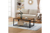 Coffee Table with Metal Frame Storage Shelf Rustic Brown