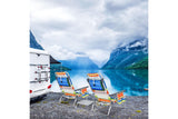 2 beach chairs and a side table create a comfortable place to enjoy your leisure time, which is suitable for outdoor activities, such as camping, fishing or family gathering. The solid steel frame is sturdy enough for long term use, and 5 reclining positions are designed to satisfy your different needs. Besides, soft headrest and widened armrest can relax your body and bring you a comfortable sitting experience. The lightweight design with folding design allows you to take it anywhere you want, and it will occupy less space when not in use. Plus, it also comes with cup holders, ice pack, storage bag and towel rack for convenient use. And the foldable side table offers more space to place your items. This 3-piece beach chair and table set allows you to enjoy the beautiful ocean view and share the happy moments with your friend or family.