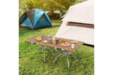 The 2 pack foldable picnic table can be linked to expand space or configured with additional tables according to your needs, which is suitable for fishing, hiking or BBQS. Crafted from lightweight aluminum, the outdoor beach table resists deformation and rust. The tabletop features a unique wood-grain printing that is stain-resistant, easy to clean, enhancing both its longevity and natural appearance. Additionally, equipped with non-slip foot pads, the portable camping table offers improved stability. Designed for convenient transport and simple assembly, both the legs and tabletop are collapsible. And no tools are required for effortless assembly. When not in use, you can store the collapsible camping table into the included carrying bag.