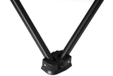 The portable camping table is designed with crossed legs and a flat top, ensuring a stable and reliable work surface. All four legs are equipped with non-slip feet, keeping the tabletop steady even on uneven ground. The table legs are crafted from high-strength aluminum alloy, offering excellent bearing capacity and resistance to bending and deformation.