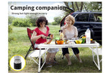 Invite all your friends over for a summer bbq. Lay out snacks on your fold up table. Cook some sausages, steaks, and portobello mushrooms. Use your second folding table to display your cooking prowess.