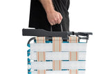 The Cocomo Low chair has comfortable moulded arms and packs up super thin. The polyester webbing straps give just the right amount of give and support at the same time we’ve added a side carry handle to make getting to the beach or event even easier.