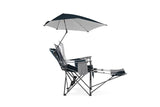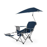 The Sport-Brella Recliner Chair is perfect for camping, sporting events, tailgating and the beach. Kick back with the easily adjustable 3-position recliner and stay protected with the 360-degree overhead umbrella. Fully enjoy yourself with all the extra features like the extra wide seat, insulated pocket, cup holder, bottle opener, and adjustable or removable footrest.