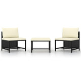 3 Piece Garden Sofa Set with Cushions Black Poly Rattan vidaXL