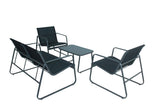 • Frame Material Details: Steel table frame; steel chair frame; sling fabric seat