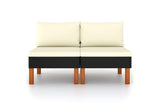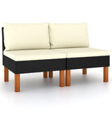 Middle Sofas 2 pcs Poly Rattan and Solid Eucalyptus Wood vidaXL