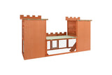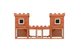 The rabbit hutch is built with high-quality pine wood frame, which ensures a long-term use. Its cozy cubby makes the perfect sleeping area for your pets. Two easy-climb ladders lead to the upper floor.