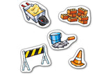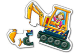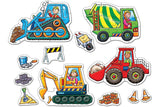 This set of jigsaw puzzles contains four brightly colored construction vehicles. Each puzzle is made up of either 4 or 8 pieces for progressive learning. There is a cement truck, excavator, wheel loader and track loader each with a cheerful driver waving from the cab. In addition to the four vehicles there are 8 play pieces so children can create scenes with the jigsaw puzzle encouraging imaginative play.