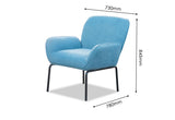 Upholstered in a beautiful blue fabric, it brings a subtle pop of colour to your space. Its soft, curved design ensures a cozy seating experience while adding a touch of elegance. The sleek black metal legs provide sturdy support and enhance its contemporary appeal.