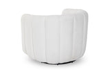 The Espinosa Swivel Accent Chair brings a modern touch to any space with its stylish boucle fabric and elegant panelled back design.