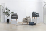This chair features a sturdy plywood frame and durable rubberwood legs, offering stability and lasting support. Enjoy the plush foam cushions and scooped arms for ultimate relaxation.