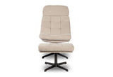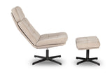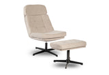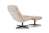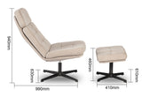 This stylish chair features a swivel base for easy rotation and a matching footstool for added relaxation.