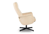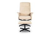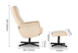 It features curved arms for added comfort and a matching footstool to complete the set.