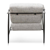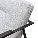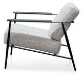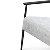 PRODUCT DESCRIPTION - Spruce up your relaxation experience with the Siki Fabric Armchair, blending industrial charm with understated elegance. Its light spec grey fabric upholstery exudes contemporary sophistication, while the raised arm support crafted from wood ensures both comfort and durability. The powder black metal legs and frame not only provide sturdy support but also add a modern touch to your living space. Sink into the wide and generously padded seat, designed for ultimate comfort, while the angled position and flared rear legs offer a stylish twist. With its single horizontal stitch detail, this armchair effortlessly combines minimalist design with maximum comfort, making it a perfect addition to any modern home. SPECIFICATIONS AND DETAILS - Assembled Product Dimensions Width: 80 cm Depth: 69 cm Height: 73.8 cm Weight: 16 kg This Product Consists Of 1 Box Or Component Box / Component 1:   Width: 62 cm Depth: 86 cm Height: 74 cm Weight: 20.6 kg Assembly Quick Assembly