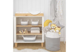 Cushion your little one during change time with this stylish yet practical change pad cover and waterproof liner set. Made from soft and breathable 100% cotton jersey our change pad cover features fully elasticated sides for a secure fit so you can change your baby confidently. Included is a waterproof micro-terry towelling liner to protect your change pad from little accidents and extend time between washes. Match back with our other items from the Noah collection to create the nursery of your dreams.