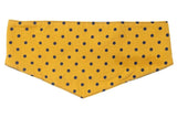 Outfit your pup in style with our Reversible Dog Bandana from Field + Wander. This dog bandana features a classic green and navy plaid design on one side with a yellow and navy polka dot design on the reverse. This cotton bandana is machine washable to keep your dog’s accessories clean in between play dates. This dog bandana features tie ends, so it’s suitable for different size dogs.