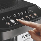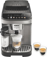 Enjoy your favourite café style coffee without the usual manual handling required for authentic espresso with the DeLonghi Magnifica Evo Fully Automatic Coffee Machine ECAM29031SB - Titan. From beans to coffee perfection; select from one-touch colour recipe icons and Magnifica Evo Titan will only grind the necessary amount of coffee needed for the selected beverage to preserve the coffee bean aroma and reduce any coffee waste for only the freshest brew every time.