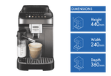 | What's In The Box: | DeLonghi Magnifica Evo Fully Automatic Coffee Machine Titan, Ground Coffee Measuring Scoop, Water Hardness Test Litmus Paper, 100ml Sample EcoDecalk Descaler Liquid, Water Filter, 220ml LatteCrema Milk Carafe (5pcs - assembled) |
