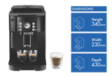 | What's In The Box: | DeLonghi Magnifica Fully Automatic Coffee Machine Black, all included accessories - Coffee machine, Steam/Water spout, Ground coffee measuring spoon, 100ml EcoDecalk solution, Litmus testing paper |