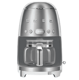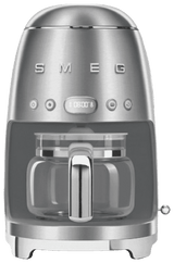 Bring the charm of a classic cafe into your home with the Smeg Drip Coffee Machine in brushed metal. With its retro 1950s styling, this automatic coffee maker makes up to 10 cups of delicious drip coffee.