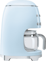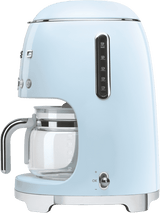Bring retro charm to your morning coffee routine with the Smeg Drip Coffee Maker in pastel blue. With a 10 cup capacity and 1.25 litre glass carafe, this sleek coffee machine brews aromatic coffee for the whole family.