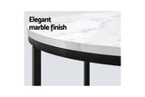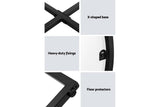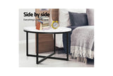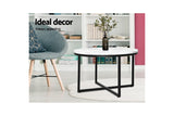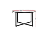 Simple and modernistic. Our Artiss Coffee Table makes for a resounding statement in style, function and practicality that fits in brilliantly with any discerning home decor. Featuring a black powder-coated metal tube base topped with a premium E1 grade MDF tabletop with elegant marble-texture laminate finish, our coffee table instantly makes an impression in your living room with its minimalist cues. The round table is smooth with safe rounded edges, whilst the unique X-shape leg design gives the coffee table loads of character as well as providing a very stable base. Not least, heavy-duty fixings and anti-slip rubber feet complete this charismatic ensemble. Wherever the coffee table is used, rest assured that it will be an astounding presence.