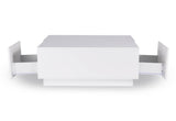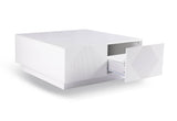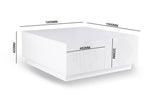 Bring a modern edge and clean, sharp lines to your living or office space with the Gates Coffee Table in white. This coffee table features a contemporary design with its front- and back-facing geometric pattern. The four ample-sized drawers are the perfect home for all your essentials; just what you've been looking for to meet your storage needs. This coffee table has a recommended overall weight limit of 80kg and 10kg per drawer, and comes with a 2 year guarantee.
