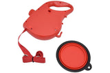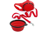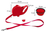 PETSWOL 3-in-1 Dog Leash with Water Bottle & Foldable Bowl - Red