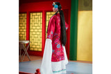 - She wears a traditional robe in the lucky color red.