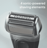 | Additional Features: | 40° Shaving head adapts, 4 Sonic-powered shaving elements, AutoSense technology, 10,000 Sonic vibrations |
