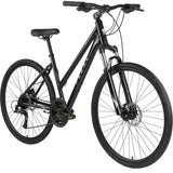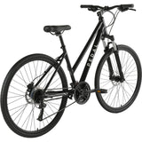 The Pedal Cardinal Trapeze Hybrid Bike is designed for urban riding, whether for daily commutes or adventures with friends and family. It features a suspension fork to handle bumps, a lightweight aluminum frame for easy maneuvering on various terrains, and wide 700x40c tires for added comfort. The Shimano 3 x 8-speed drivetrain with trigger shift allows for smooth gear changes, while hydraulic disc brakes provide reliable stopping power in all weather conditions. Quick release skewers facilitate easy wheel maintenance. This bike is versatile, reliable, and comfortable, making it ideal for commuting, outdoor activities, and staying fit.