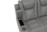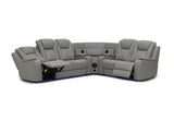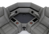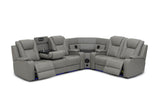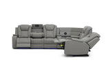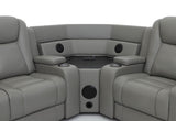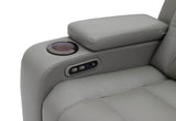 * Available in MTO Colours: Mid Tan, Burnt Orange, Red, Oyster, Beige, Mist, Tan, Brown, Blue, Charcoal, Light Grey or Black. * Drop Down Table with Reading Lights and Power, Storage Arm with Cup Holder * Wedge Table with Speakers, Wireless Chargers and Subwoofer * Connects to TV Seamlessly via Bluetooth * Two Inbuilt Dual Motor Recliners, Storage Console and Base Light Strip