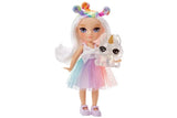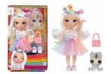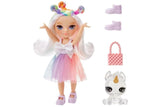 - 5.5” Small doll, removable outfit & shoes, purse and magical pet with horn.
