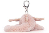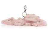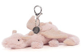 The Rose Dragon Bag Charm brings a blush of magic to your everyday dashes. With a silver claw clip and Jellycat tag, blossom-soft fur and glitter jersey wings, spines and ears, this compact dragon is a charming companion!