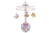 It is the first mobile specially designed to integrate with the Next2me cot and most wooden cradles. It promotes relaxation and helps babies sleep peacefully thanks to their melodies and soft night light.