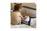 The drop or roll-down sides give quick and easy access for settling and feeding throughout the night. The bedside sleeper attaches to the side of the bed ensuring a safe sleep space for baby, with the comfort of knowing night time cuddles are never too far away.