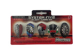 Harrow’s highly popular System 5 and Radical flight tuning systems allows a player to experiment with up to nine different shaped flights (must order one of each system) in order to find the one that suits their throwing style.