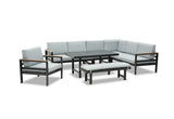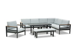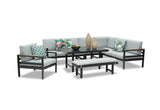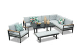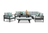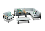 Inclusions: 1 x Outdoor Armchair, Outdoor Corner Lounge, Medium-High Table, Bench Seat, Furniture Cover