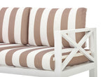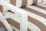 Coastal Vibe: Equipped with coastal-vibe striped cushions in neutral tones, designed to complement most outdoor spaces and enhance the relaxing atmosphere.