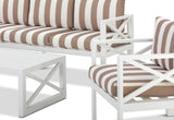 Introduce a touch of Hamptons-inspired elegance to your outdoor living space with the Pavillion 4 Piece Lounge. This stylish and functional set brings together spacious seating, a charming coastal vibe, and durable materials, making it the perfect addition to any outdoor setting.