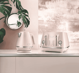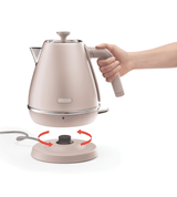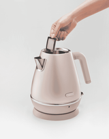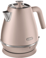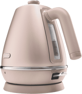 Bring elegant European style to your kitchen with the DeLonghi Distina Perla Kettle in a soft rose finish. This cordless kettle features a 1.7L capacity and 2000 watt concealed heating element to quickly boil water for tea or coffee. The removable, washable anti-scale filter ensures pure tasting beverages.