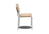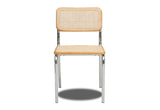 The sturdy chrome metal legs and frame provide stability and a sleek contrast to the natural texture of the rattan.