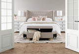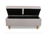 The tapered timber legs add a luxe element and this storage bench has a sturdy wooden frame.
