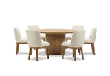 6 x Cora Dining Chairs: Comfortable high-back chairs upholstered in soft beige fabric, offering a cozy and inviting seating experience.